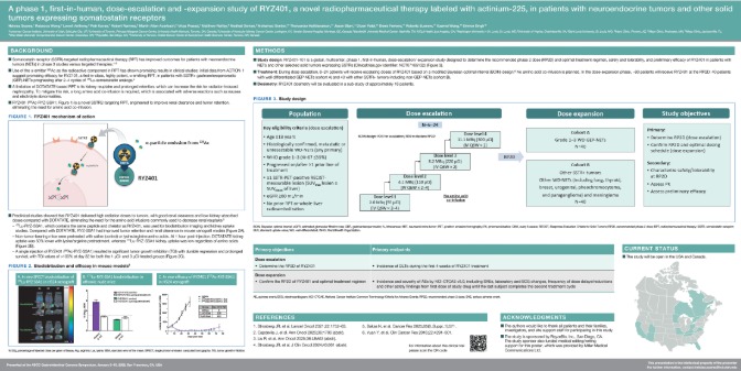 Posters & Presentations About Overview Team What We Do Discovery Capabilities Manufacturing Pipeline Overview SSTR2 GPC3 ACP3 Posters & Presentations Careers Contact A Phase 1, First-in-human, Dose-escalation and -expansion Study Of RYZ401, A Novel Radiopharmaceutical Therapy Labeled With Actinium-225, In Patients With Neuroendocrine Tumors And Other Solid Tumors Expressing Somatostatin ReceptorsASCO GI 2026A phase 1/1b Study of the Theranostic Pair RYZ811 (diagnostic) And RYZ801 (therapeutic) In Patients With Glypican-3-positive (gpc3+) Previously Treated, Unresectable Hepatocellular CarcinomaASCO GI 2026RYZ101 (225Ac-DOTATATE) + carboplatin + etoposide + atezolizumab in somatostatin receptor-expressing extensive-stage SCLCUASCL 2025 World Conference on Lung CancerRYZ101 (225Ac-DOTATATE) ± pembrolizumab in estrogen receptor-positive, human epidermal growth factor receptor 2-negative, locally advanced and unresectable or metastatic breast cancer progressing after prior therapy: the Phase 1b/2 TRACY-1 studySan Antonio Breast Cancer Symposium 2024[68Ga]Ga-RAYZ-8009: A Glypican-3–Targeted Diagnostic Radiopharmaceutical for Hepatocellular Carcinoma Molecular Imaging—A First-in-Human Case SeriesJNM 2024RYZ101 (225Ac-DOTATATE) + carboplatin + etoposide + atezolizumab in somatostatin receptor expressing extensive-stage small-cell lung cancer2024 IASLC World Conference on Lung CancerPhase 1b portion of the ACTION-1 phase 1b/3 trial of RYZ101 in gastroenteropancreatic neuroendocrine tumors progressing after 177Lu somatostatin analogue therapy: Safety and efficacy findingsSNMMI Annual Meeting 2024Phase 1b portion of the ACTION-1 phase 1b/3 trial of RYZ101 in gastroenteropancreatic neuroendocrine tumors progressing after 177Lu somatostatin analog therapy: Safety and efficacy findings2024 ASCO Annual MeetingPhase Ib portion of the ACTION-1 phase Ib/3 trial of RYZ101 in gastroenteropancreatic neuroendocrine tumors2023 ESMO Congress225Ac-DOTATATE (RYZ101) dosimetry results from Part 1 of the ACTION-1 Trial2023 EANM Meeting225Ac-DOTATATE (RYZ101) dosimetry results from Part 1 of the ACTION-1 Trial2023 SNMMI Annual MeetingACTION-1 phase Ib/3 trial of RYZ101 in somatostatin receptor subtype 2 expressing gastroenteropancreatic neuroendocrine tumors progressing after 177Lu somatostatin analogue therapy: initial safety analysis2023 ASCO Annual MeetingGPC3 targeted radiopharmaceutical therapy for HCC: Preclinical characterization of a novel peptide binder2023 EASL MeetingAnti-tumor activity of RYZ101 (Ac-225 DOTATATE) in somatostatin receptor-expressing preclinical models of small-cell lung cancer2023 AACR Annual MeetingSurvival Outcomes in Metastatic Gastroenteropancreatic Neuroendocrine Tumor Patients Receiving Concomitant 225Ac-DOTATATE–Targeted α-Therapy and Capecitabine: A Real-World-Scenario Management-Based Long-Term Outcome StudyJNM 2023